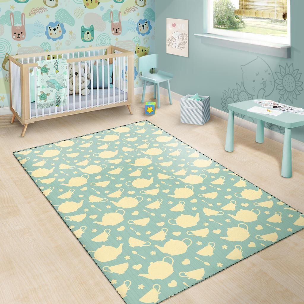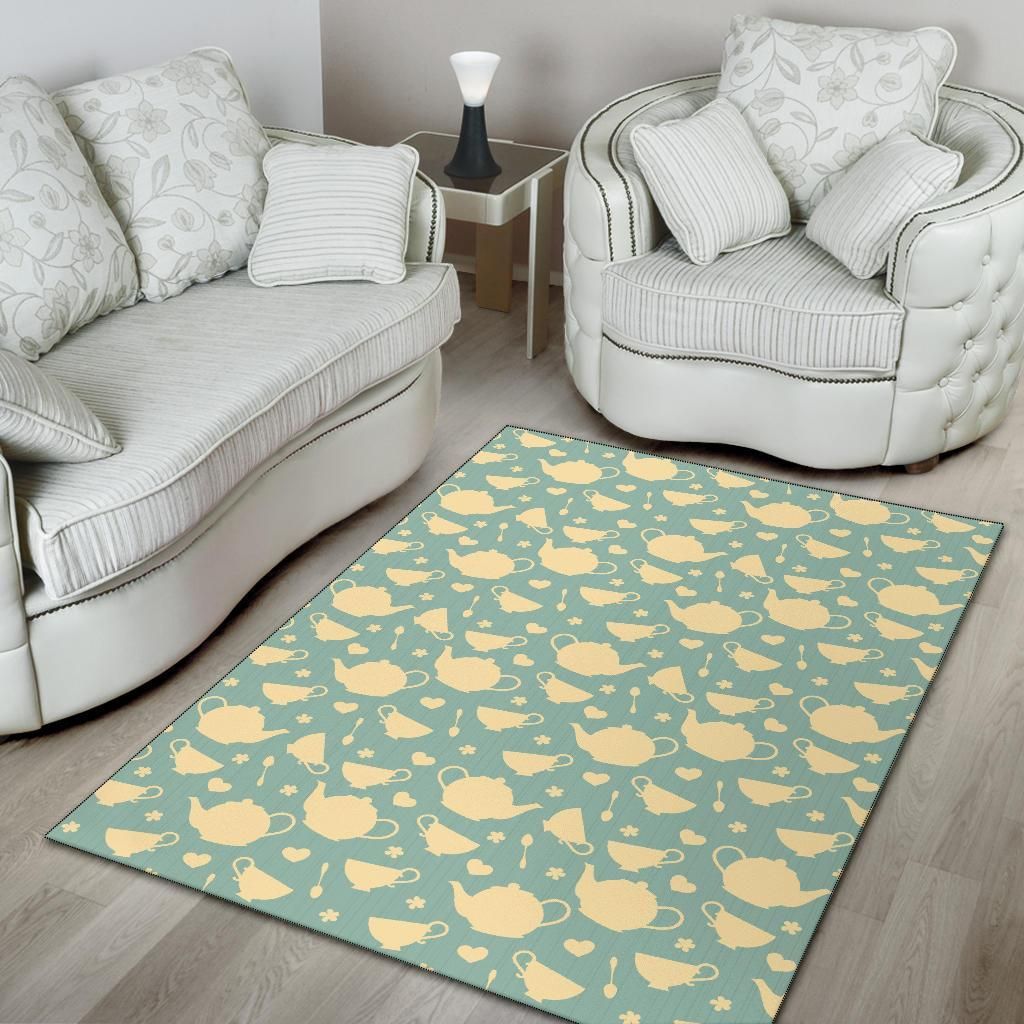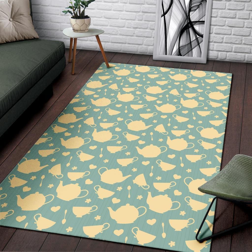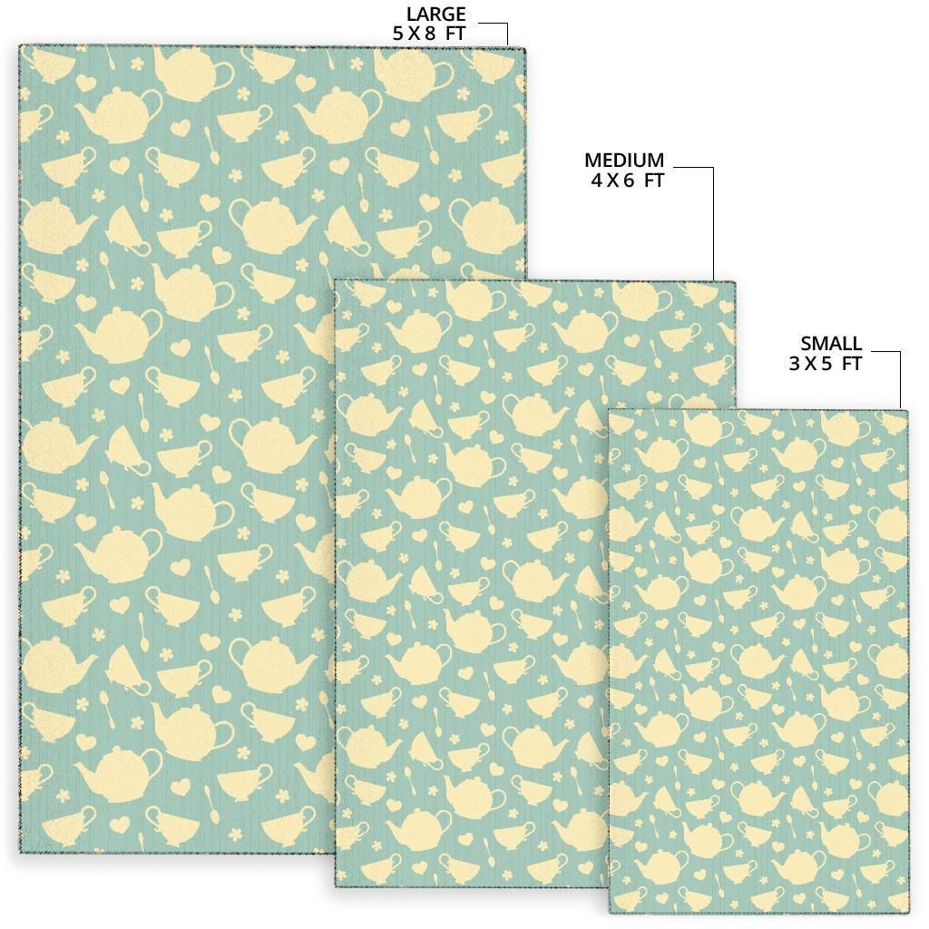 Beige Tea Pots And Hearts In Green P …